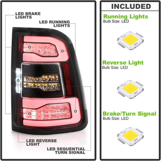 For [Incandescent Model Only] 2019-2022 Ram 1500 Black Full LED Tail Lights