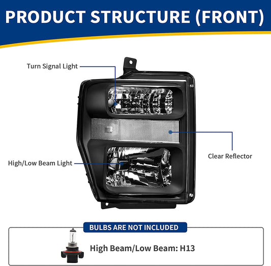 Headlight Assembly Compatible with 2008-2010 Ford F250 F350 F450
