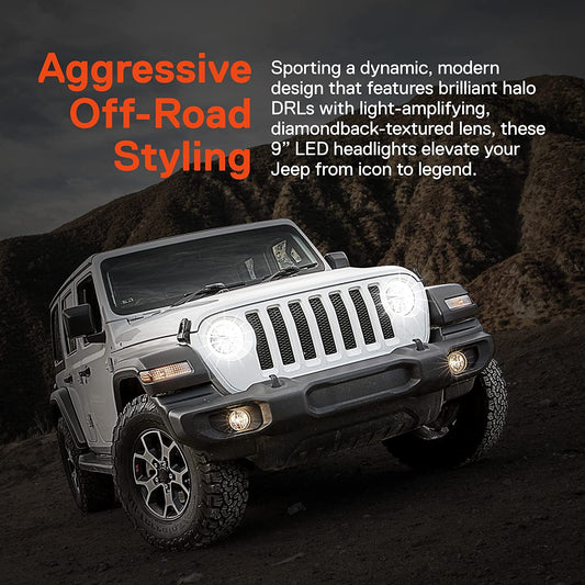 Upgraded 9" Round LED Headlights for Jeep Wrangler JL Gladiator JT 2018-2023
