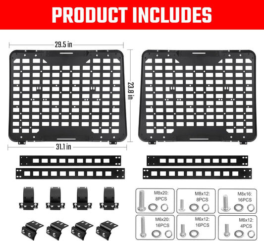For Jeep Wrangler 2007-18 Rear Window Storage Panel 2PCS