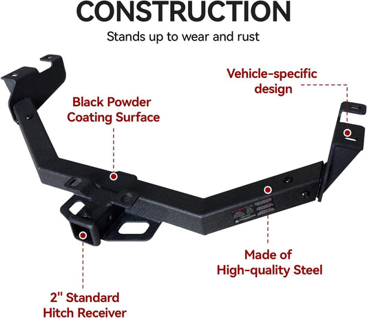 Trailer Hitch Black Steel Compatible with 1999-2013 Chevrolet Silverado 1500 2500 3500 and GMC Sierra 1500 2500 3500 w/2” Hitch Receiver