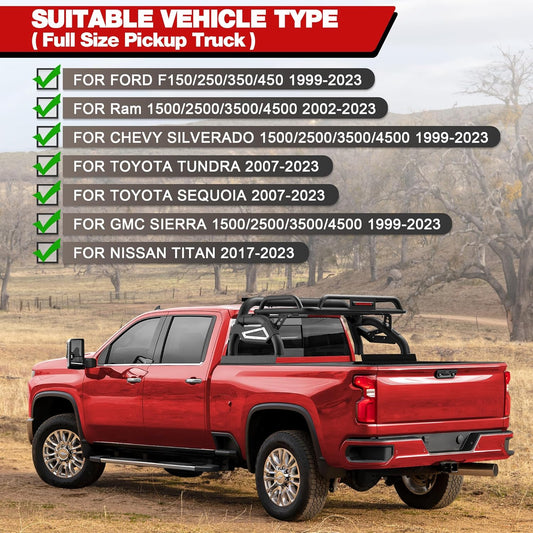 Truck Rack Compatible with 2002-2022 Dodge Ram 1500, 2014-2022 Chevy Silverado 1500, 2015-2022 Ford F-150, 2007-2013 Toyota Tundra