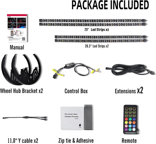 【EASY INSTALL】4Pcs 15.5 inch Led Wheel Ring Lighting Kit Single Row Chase Dancing Color Neon Rim Light with W/Turn Signal & Braking
