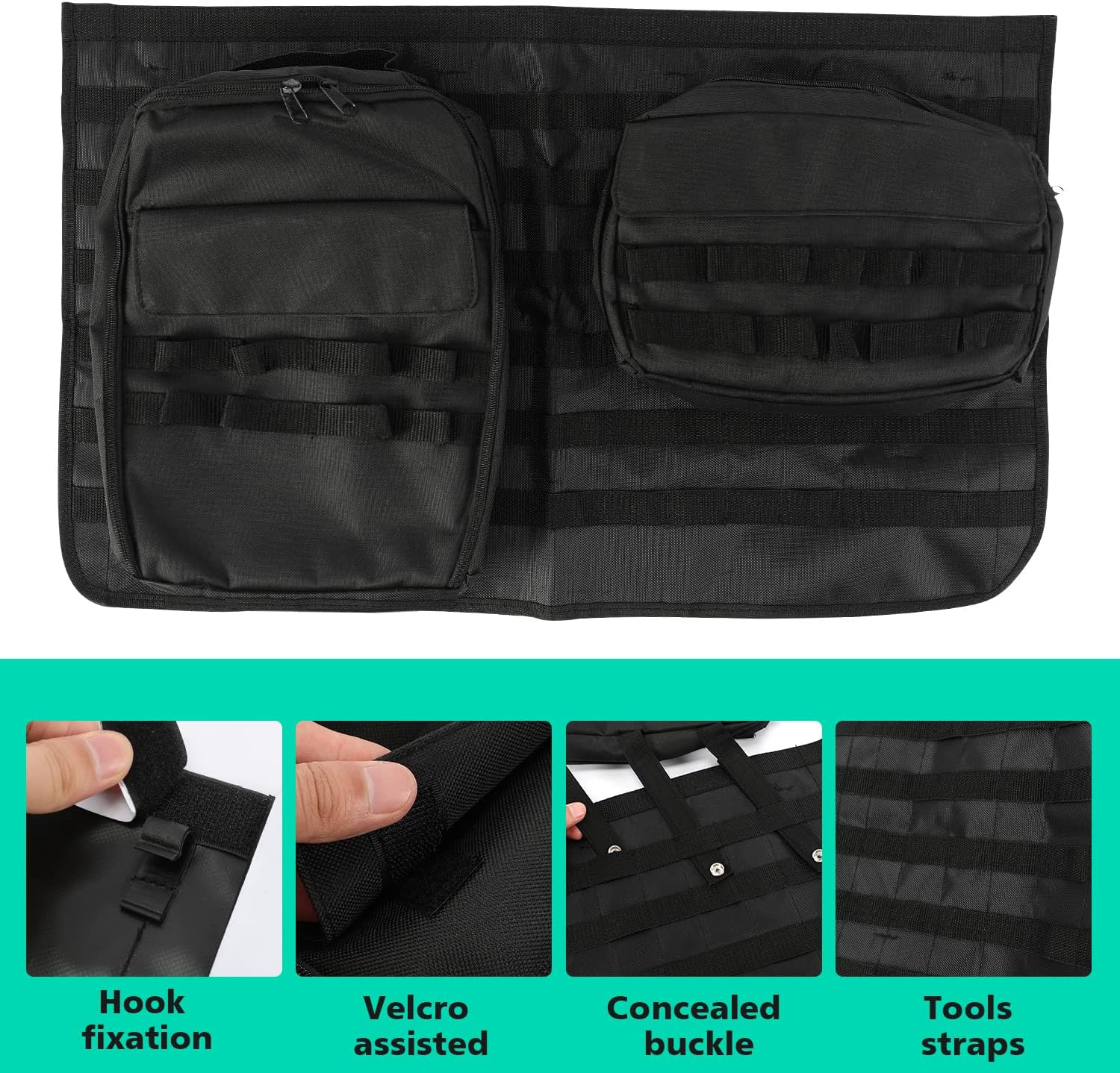 - 🚗【Material】Tailgate tools storage bag made of the highest quality oxford canvas, wear and dirt resistance, super tough, unparalleled durability, easy to clean and store (detachable).