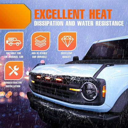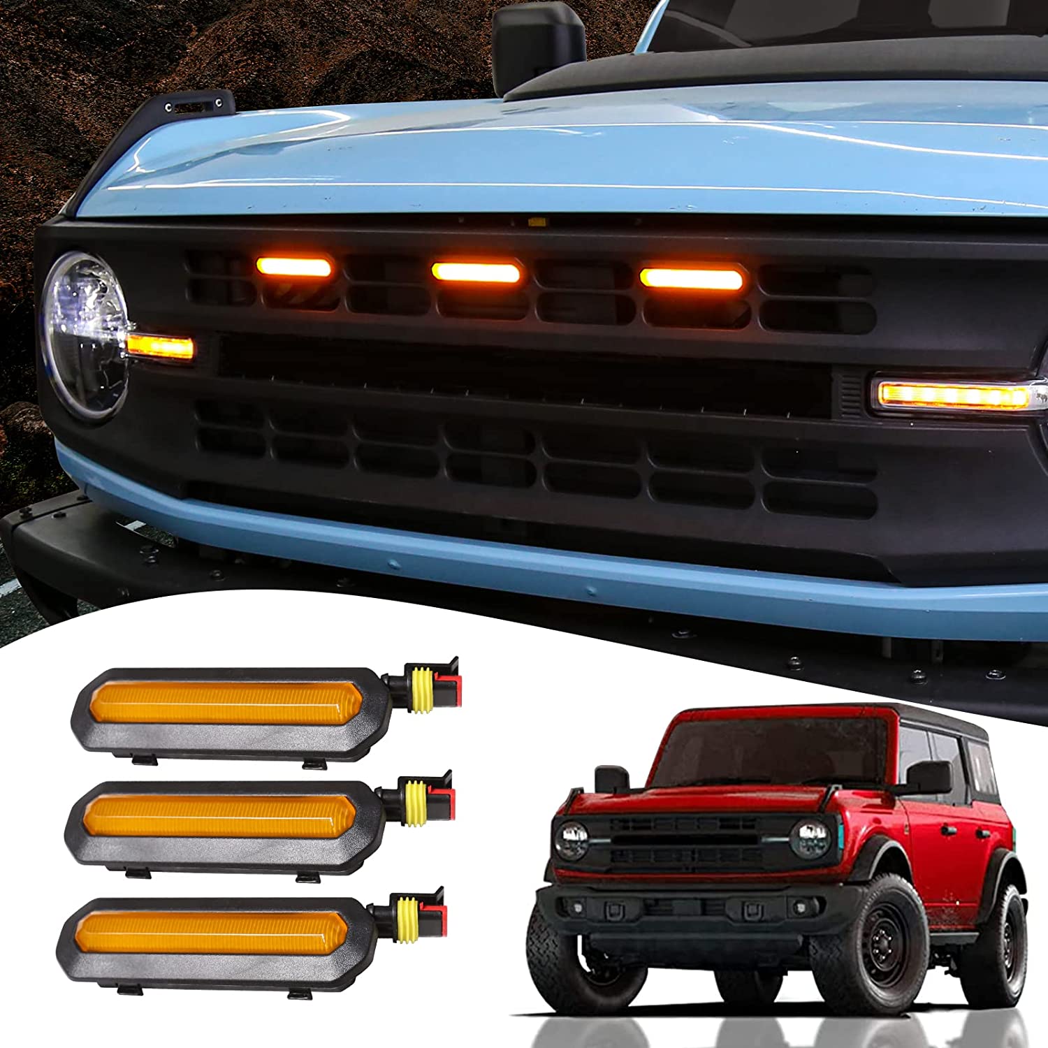 3PCS Front LED Grille Lights for Ford Bronco Accessories 2021-2024 2/4-Door Amber OEM Grille Lamps Kit with Fuse & Wiring Harness