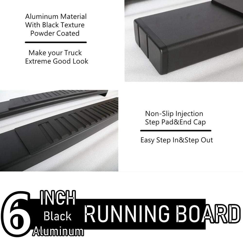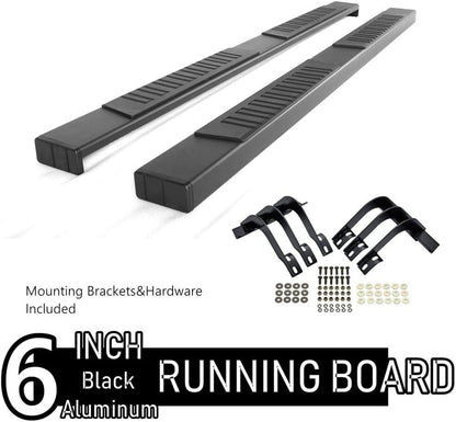- Protect Your Rocker Panels with 6" wide running boards. Build from Durable, Top Grade 6 Inch Wide Black Powder Coated Aluminum with UV Resistant Non-Slip Step Pads. Dual Strength Construction Provides Extra Protection Against Obstacles and Impact.