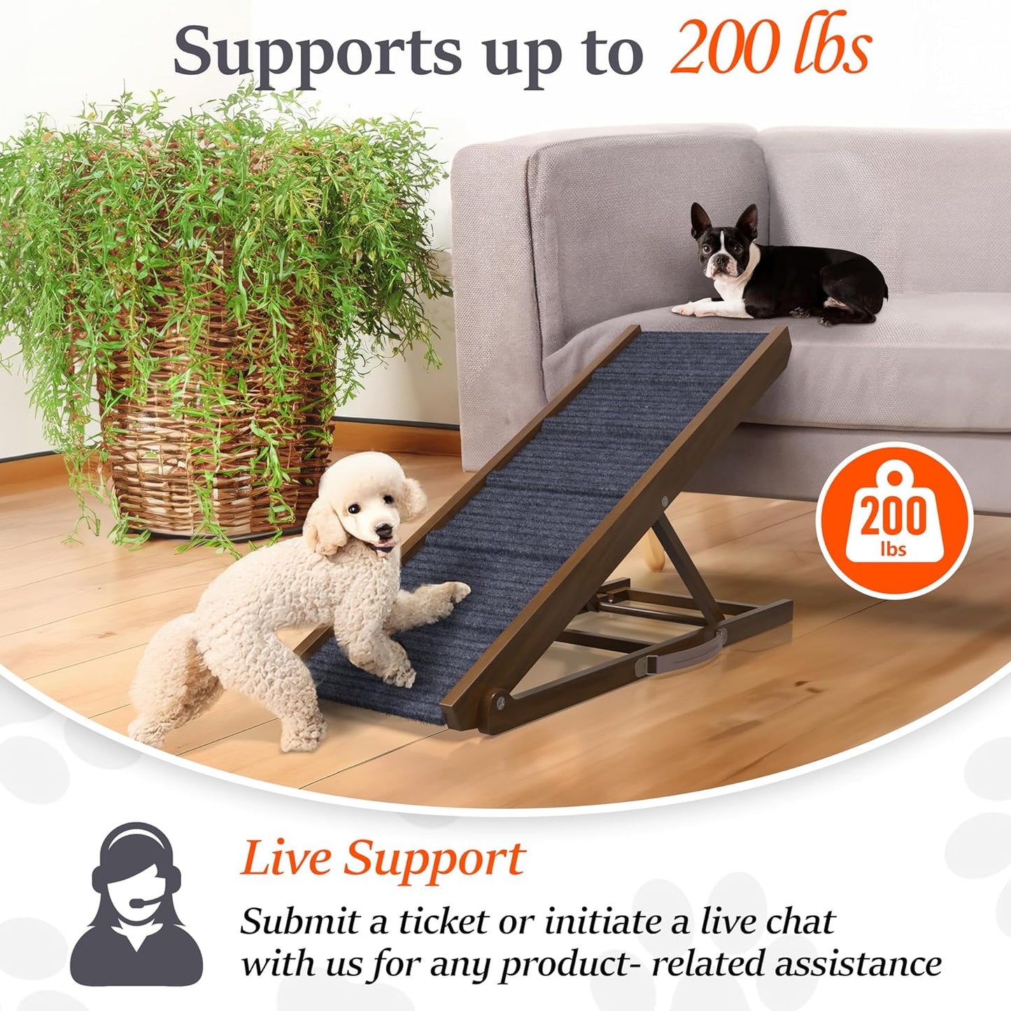 - ADJUSTABLE AND VERSATILE: This 40" long dog ramp is perfect for small to medium-sized dogs and offers an adjustable height range of 11"-23", making it suitable for various furniture heights.