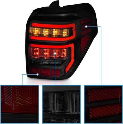 For 2010-2022 Toyota 4 Runner LED Tube Smoke Black Replacement Tail Light Assembly Pair - Passenger and Driver Side