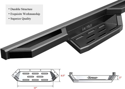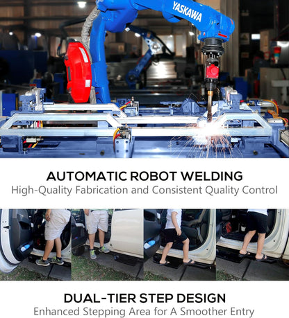 - HEAVY DUTY - Supports up to 500 lbs in weight capacity; running boards are black powder coated for rust resistance and UV protection.