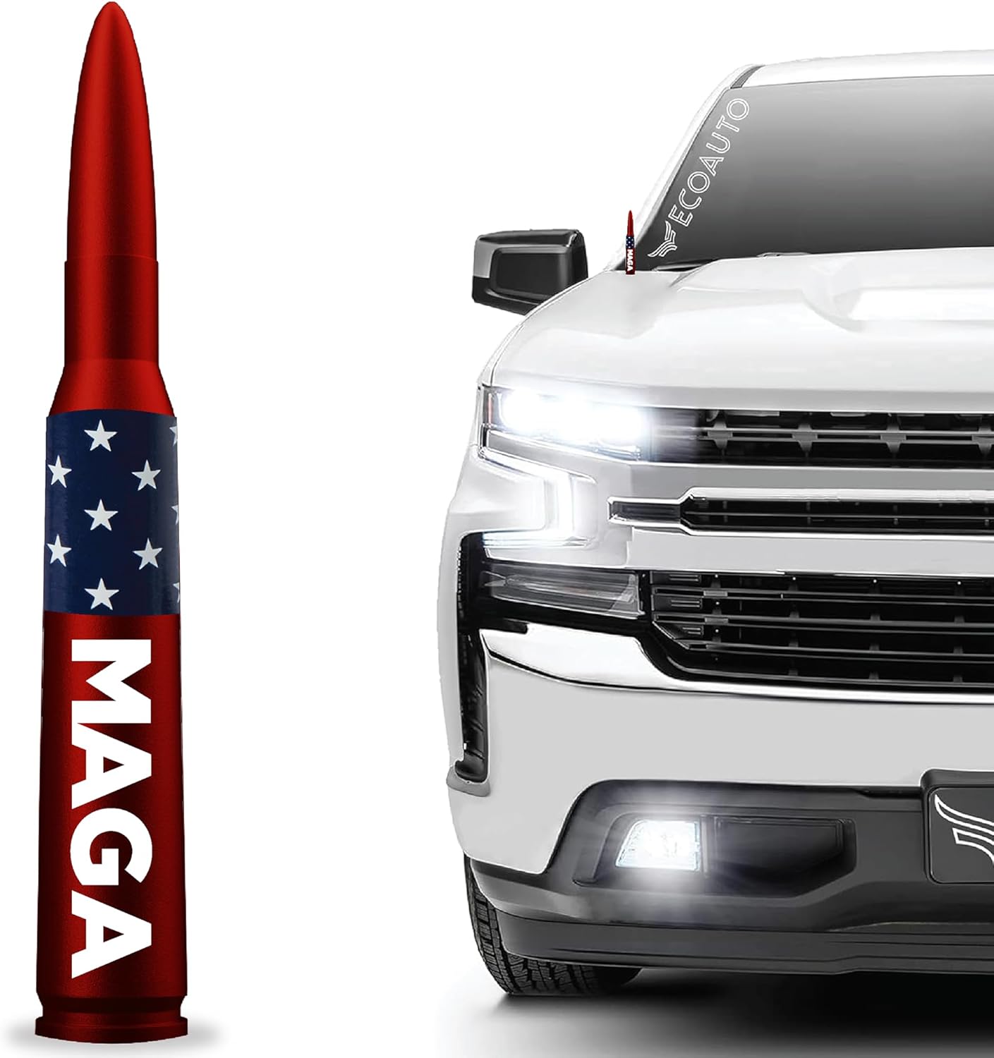- MILITARY-GRADE: Made with 6061 Billet Aluminum Construction and Hard Anodize Black finish that will not chip, scratch or fade. Completely carwash safe. ADD STYLE with this car Bullet Antenna! This Aluminum Car Antenna topper has the same dimensions as a real 50 Caliber Bullet!