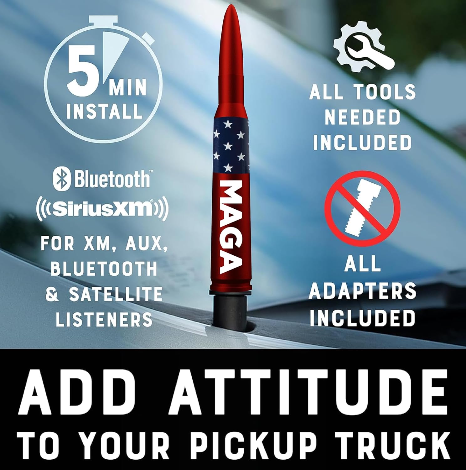 - STAY TUNED: AM-FM radio signal may weaken in remote areas. Our bullet antennas are ideal for drivers who prefer the look of a short antenna and prefer bluetooth or satellite over AM/FM radio.