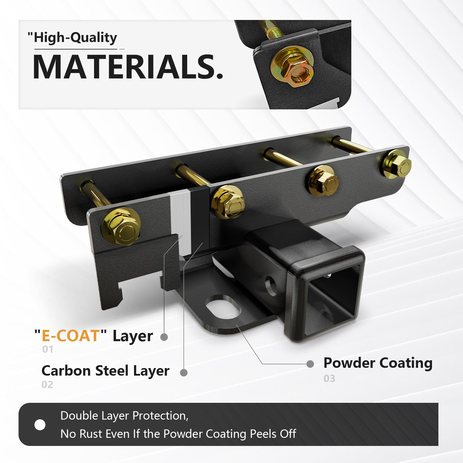 - 【Durable and Corrosion-Resistant】- The hitch receiver is treated with a professional black coating to prevent corrosion and damage. This durable, corrosion-resistant finish enhances its longevity by protecting it from harsh weather and road conditions, ensuring it remains in top condition for longer.