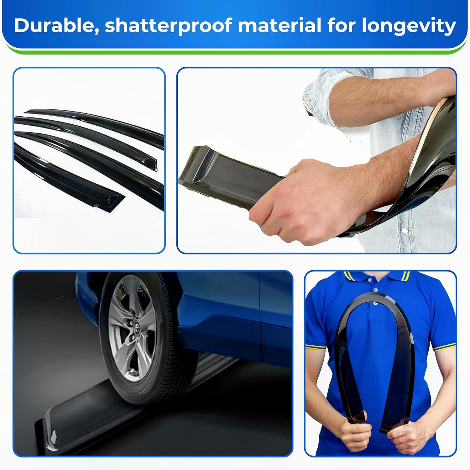 - 【Simple Setup】Installation is a breeze and no drilling or special tools required. Prioritize a test fit for the visors before finalizing attachment. [NOTE: Refrain from washing your car within the initial 24 hours after installation.]