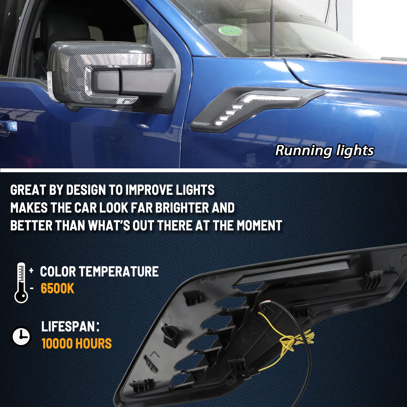 - Complete Package – Easy Installation:Your purchase includes:Driver Side & Passenger Side Bumper Trim;Wiring Harness Accessory for a hassle-free installation;Direct Replacement – No modifications needed (Black wire to Negative;Red wire to DRL light;Yellow wire to Turn Signal light).