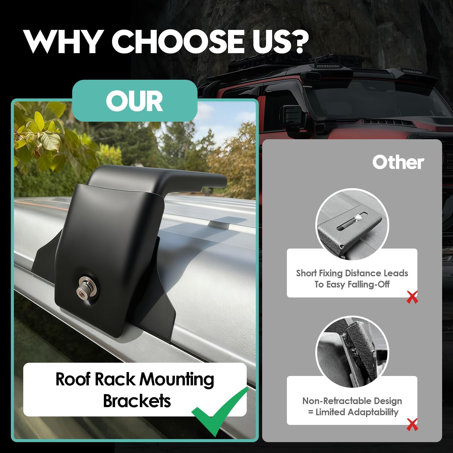 【Ideal for Rooftop Tents, Kayaks & Gear】Supports rooftop tents, kayaks, cargo boxes, and overlanding equipment for camping, fishing, and outdoor adventures.