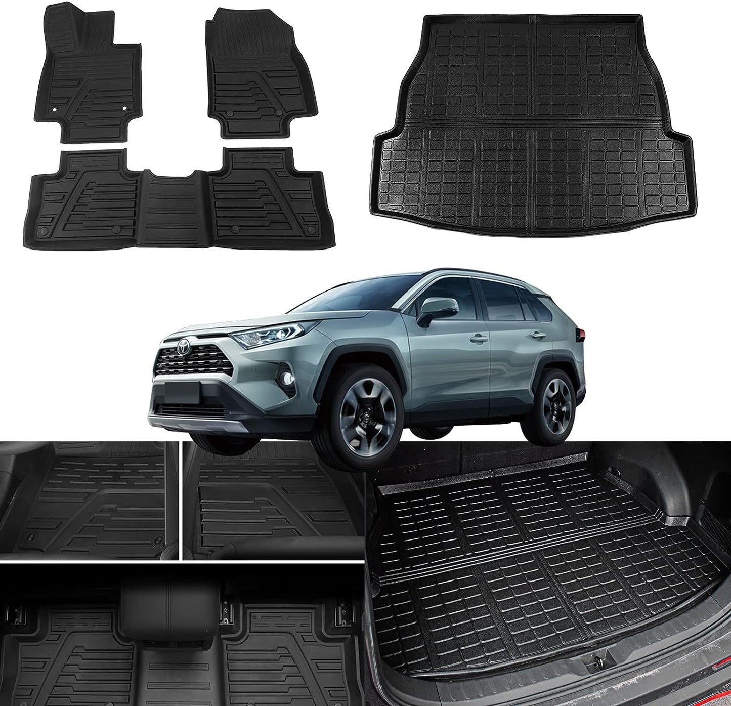 - Design: According to the original car design, these trunk mats are suitable for RAV4 2019 2020 2021 2022 2023. A total of four pieces, including one cargo liner and a set of floor mats. Note: Only suitable for left hand drive RAV4.