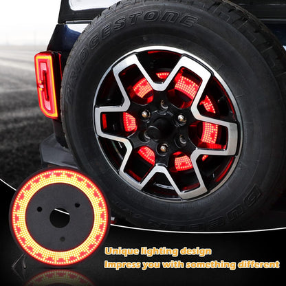 - ★ Make up for the brightness of the oem high mounted brake light and increasing the visibility of your bronco with wheel ring brake light.