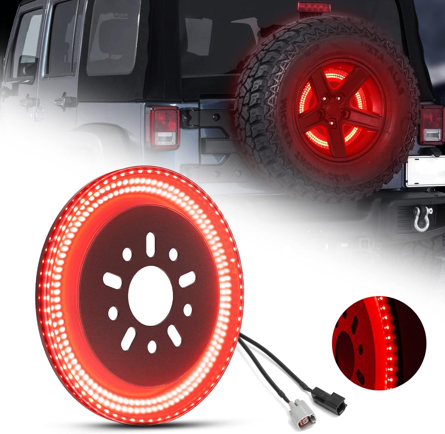 - 【3-Sided Glowing】Spare tire light is a three-sided light-emitting feature combined with the front, left and right sides, providing a higher visibility and a more fashionable appearance for your third brake light and wheel light. When you're driving a jeep on the road, it's even more attractive to pedestrians.