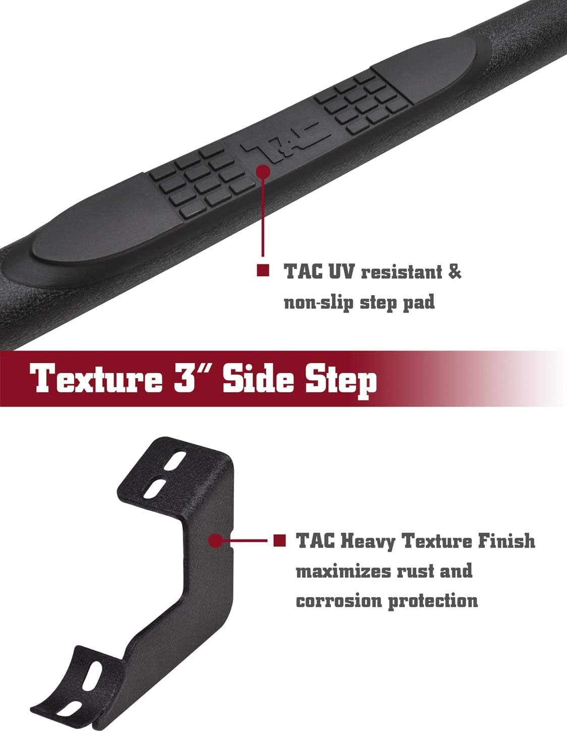 - CONSIDERATE DESIGN - The steps actually design in 3 inches round tube with UV resistant non-slip wide step pads give you wider step area and care your step on the car.
