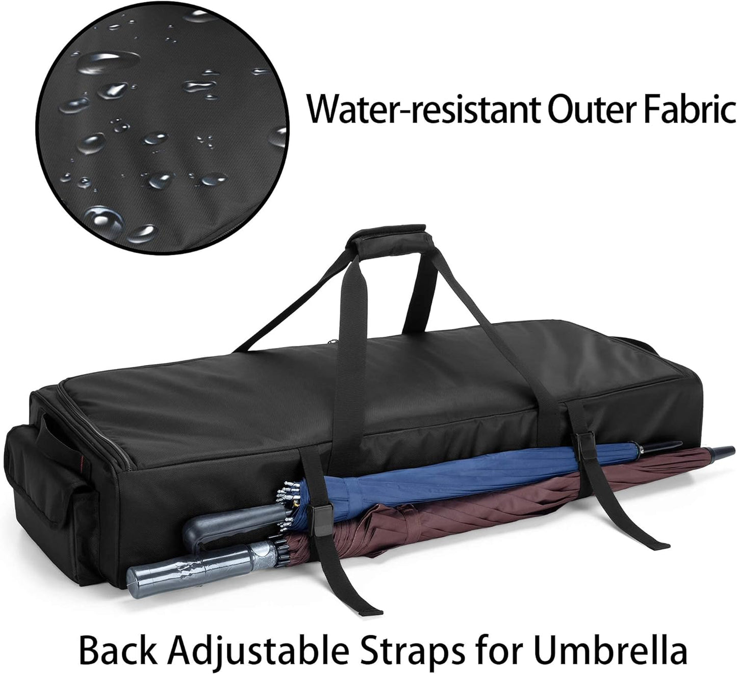 - 【Multiple Pockets】: 3 front zippered pockets and 2 side pockets with flap offer extra space for small objects. 3 inner zippered mesh pockets on the top of the bag help to keep your item neatly organized. 2 adjustable tie-down straps at the back of the bag for umbrellas.