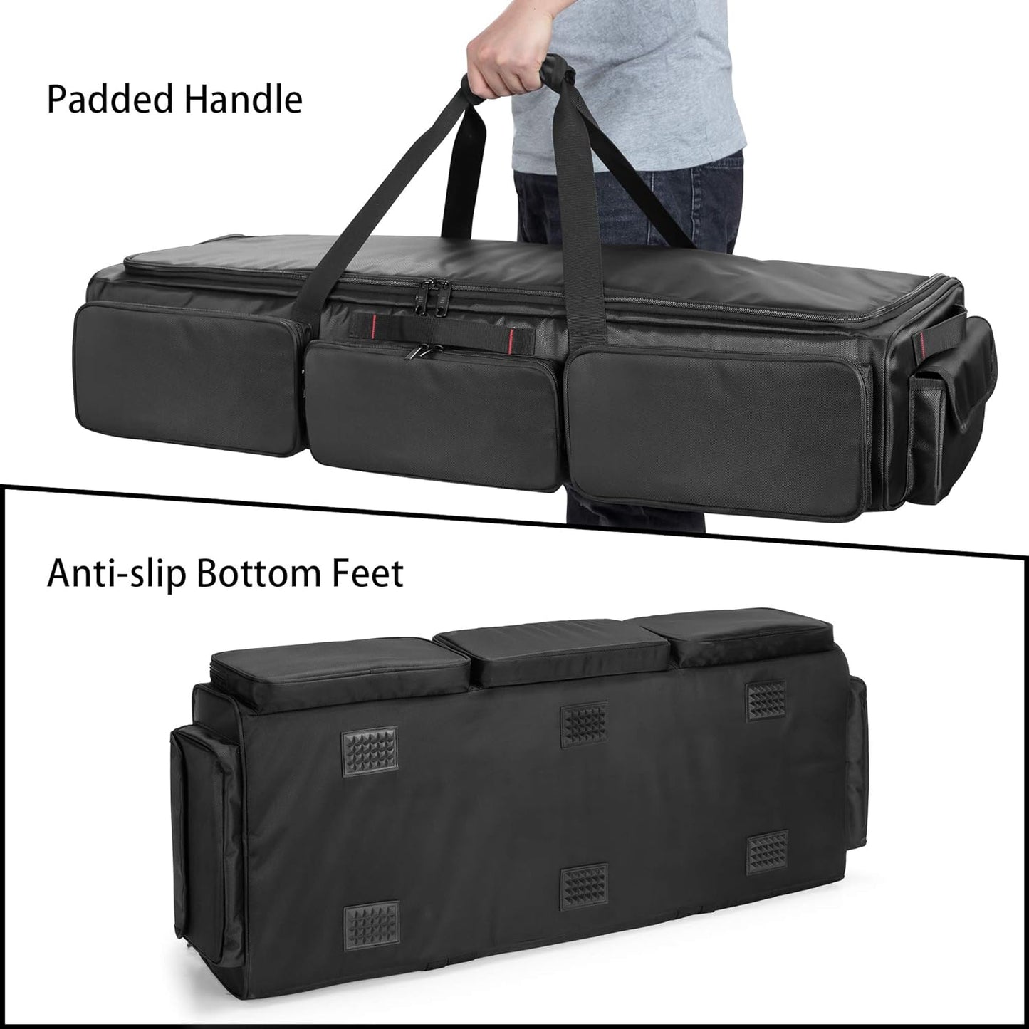 - 【Large Compartment】: The main compartment with sturdy bottom pad is large enough for jumper cables, tools, recovery gear, medical kit. 4 removable padded dividers attached with fastener on the inner wall divide the bag into 5 rooms, you can customize the bag according to your needs.