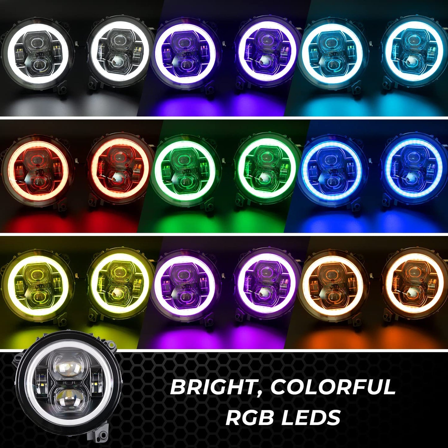9” Inch RGB halo Headlights with Bluetooth for 2018-2023+ Wrangler JL Gladiator JT Accessories