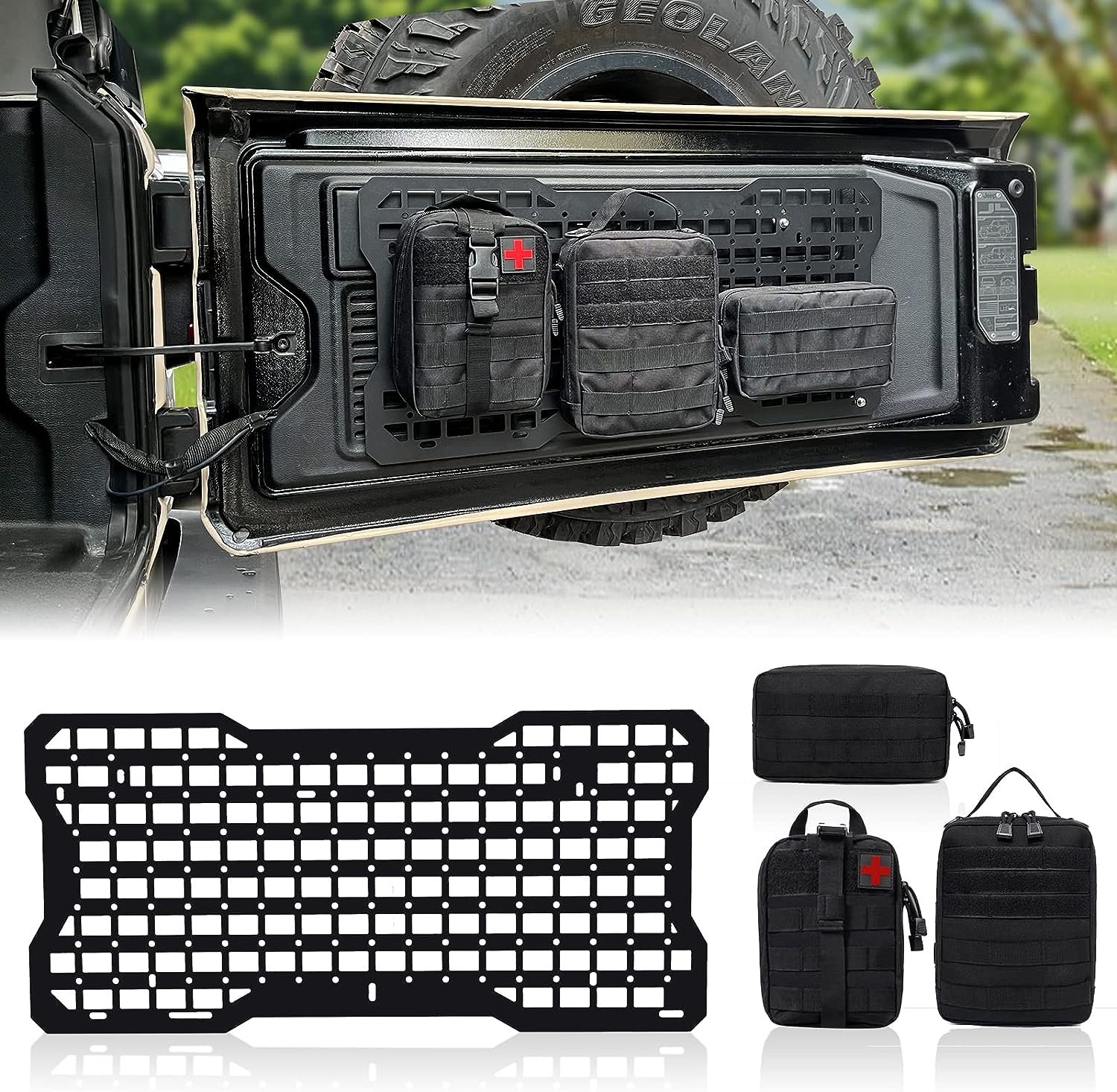 Wrangler Tailgate Tactical Panel with 3 Moll Pouch/for Jeep Rear Door Cargo Organizer Kit Compatible with Jeep Wrangler 2007-2022 JK JKU & 2018-2022 JL JLU (Aluminum Alloy)